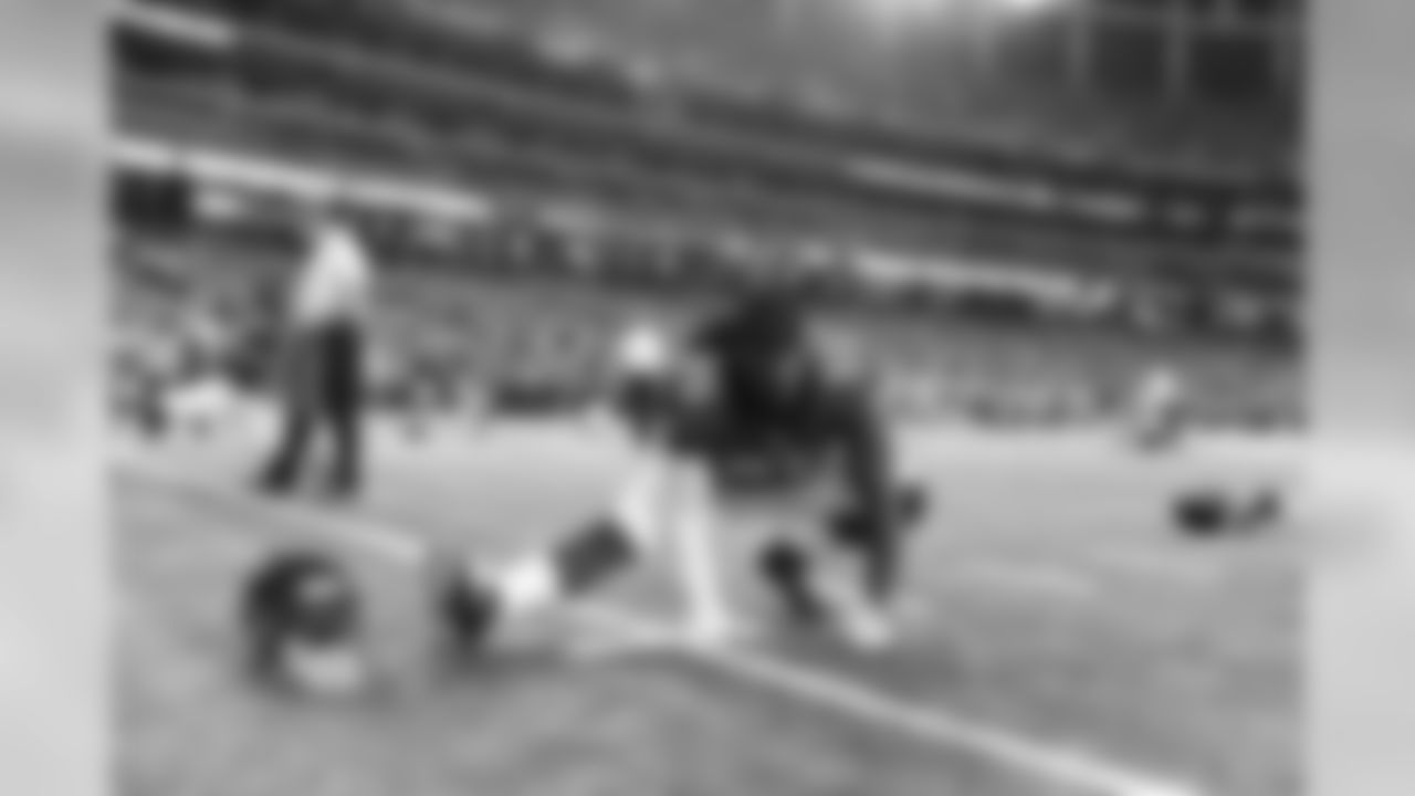 QB Matt Ryan speaks with former NFL QB Joe Theismann on the sideline prior to the start of the game.
