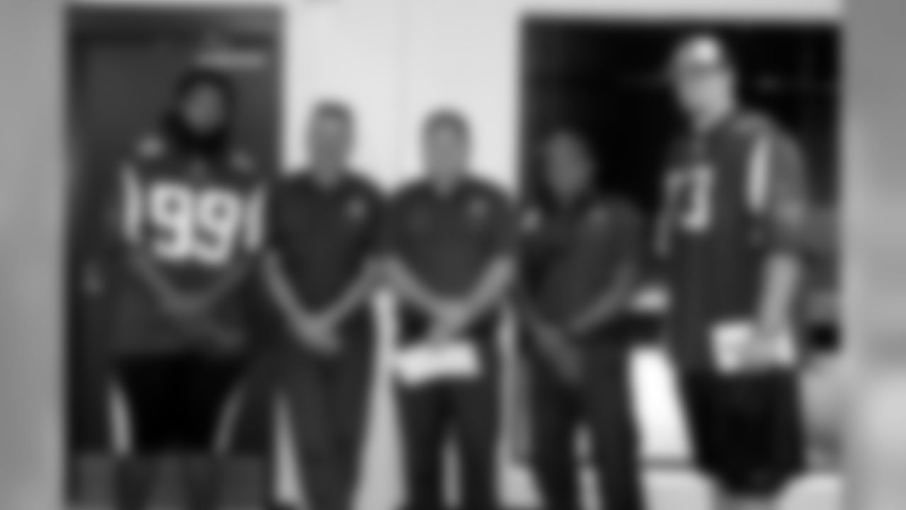 Several Falcons players spent Wednesday afternoon visiting fire stations in Metro Atlanta. The guys brought pizza and signed autographs to thank firefighters in Fulton, Gwinnett and Hall Counties.
