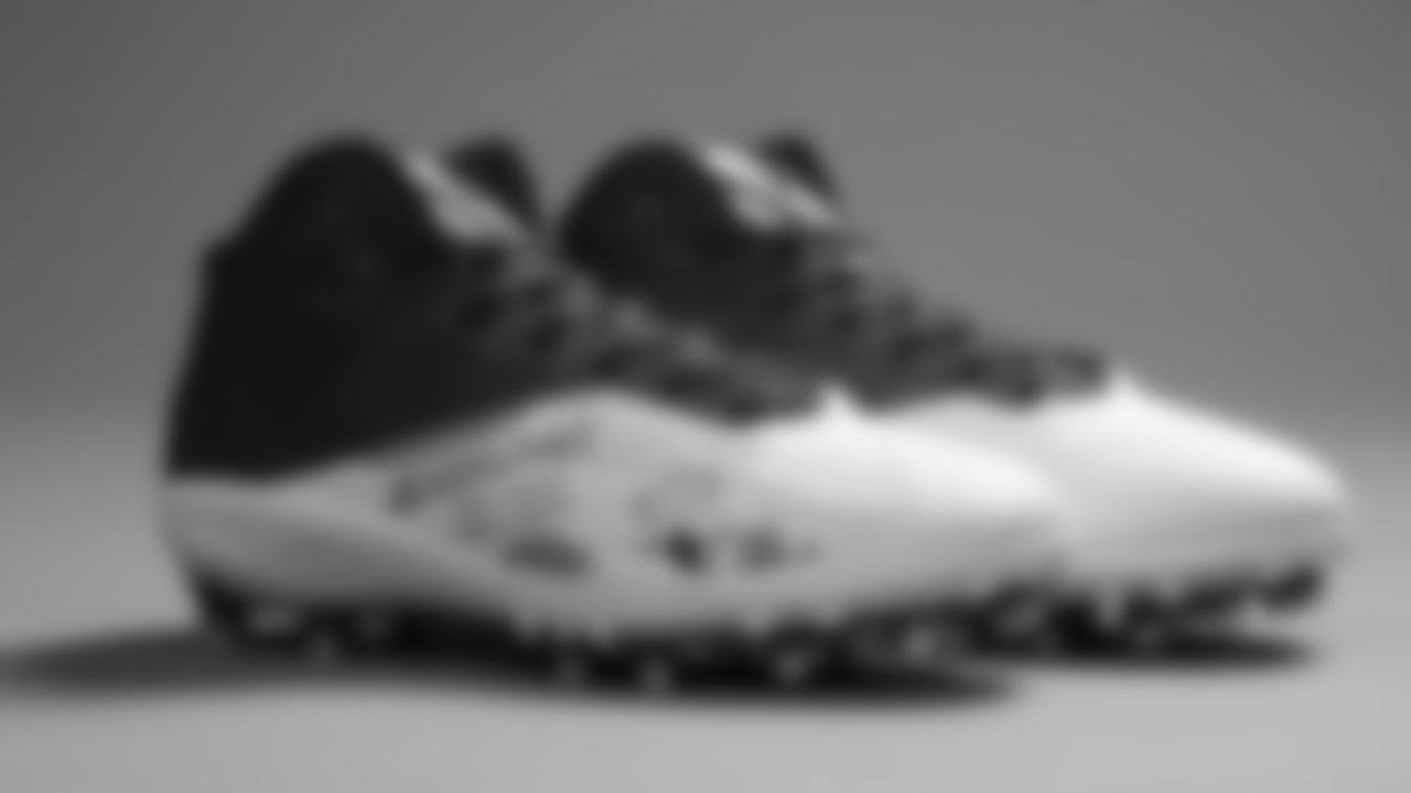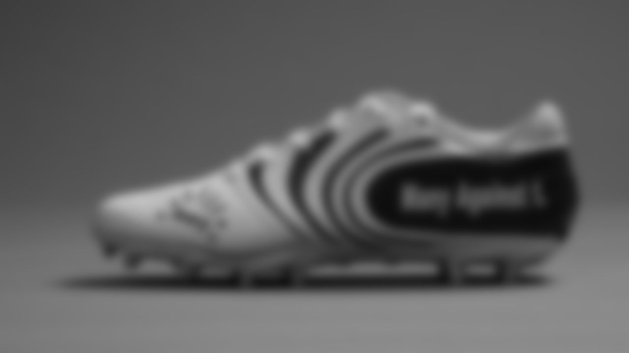 Cleats worn by Atlanta Falcons tight end Hayden Hurst #81 for the 2020 My Cause, My Cleats campaign raising awareness for Mental Health and Suicide Prevention/Hayden Hurst Family Foundation.