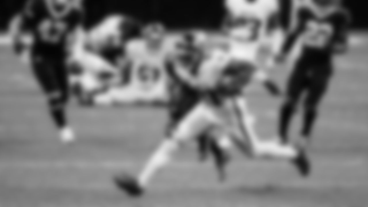 Atlanta Falcons wide receiver Russell Gage #83 makes a catch during the first half against the New Orleans Saints on November 22, 2020.