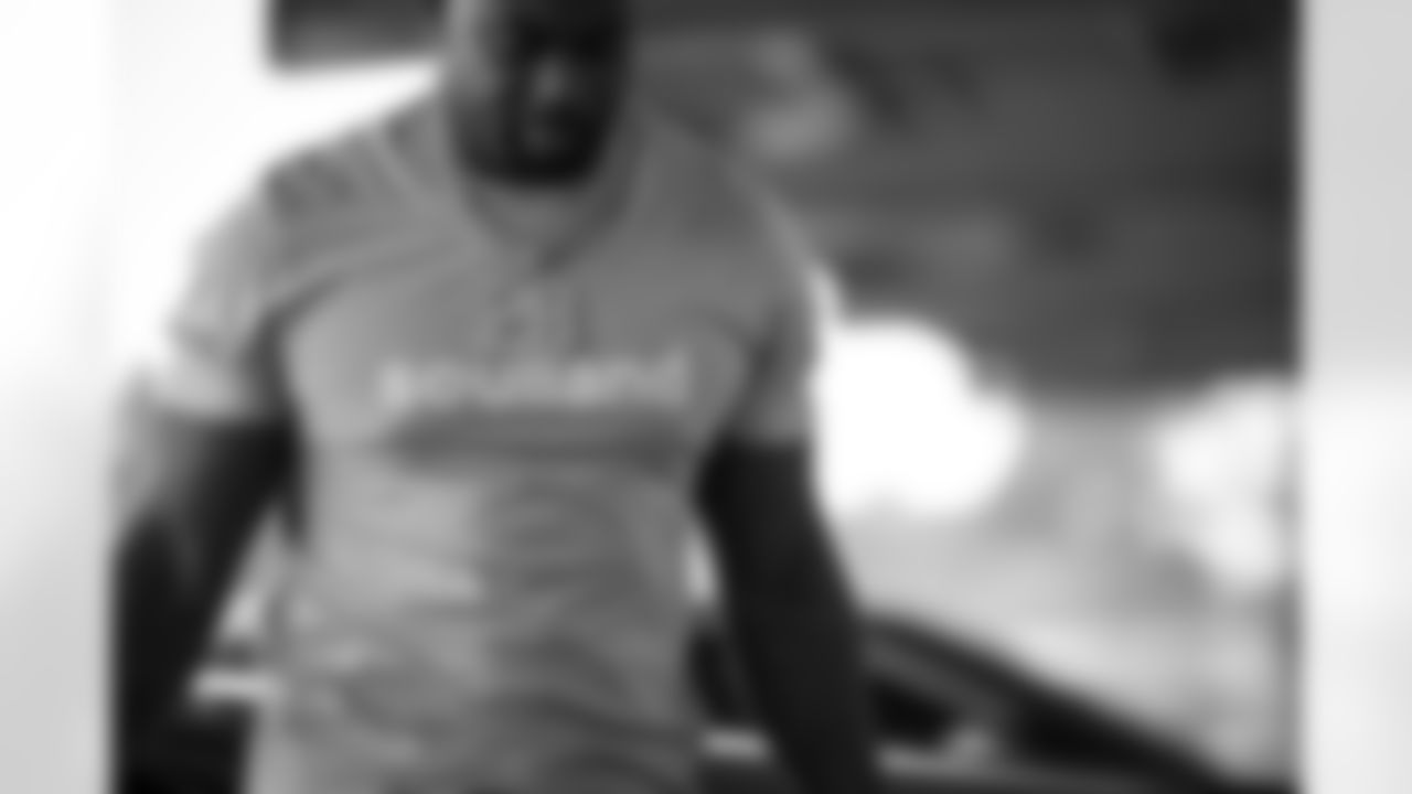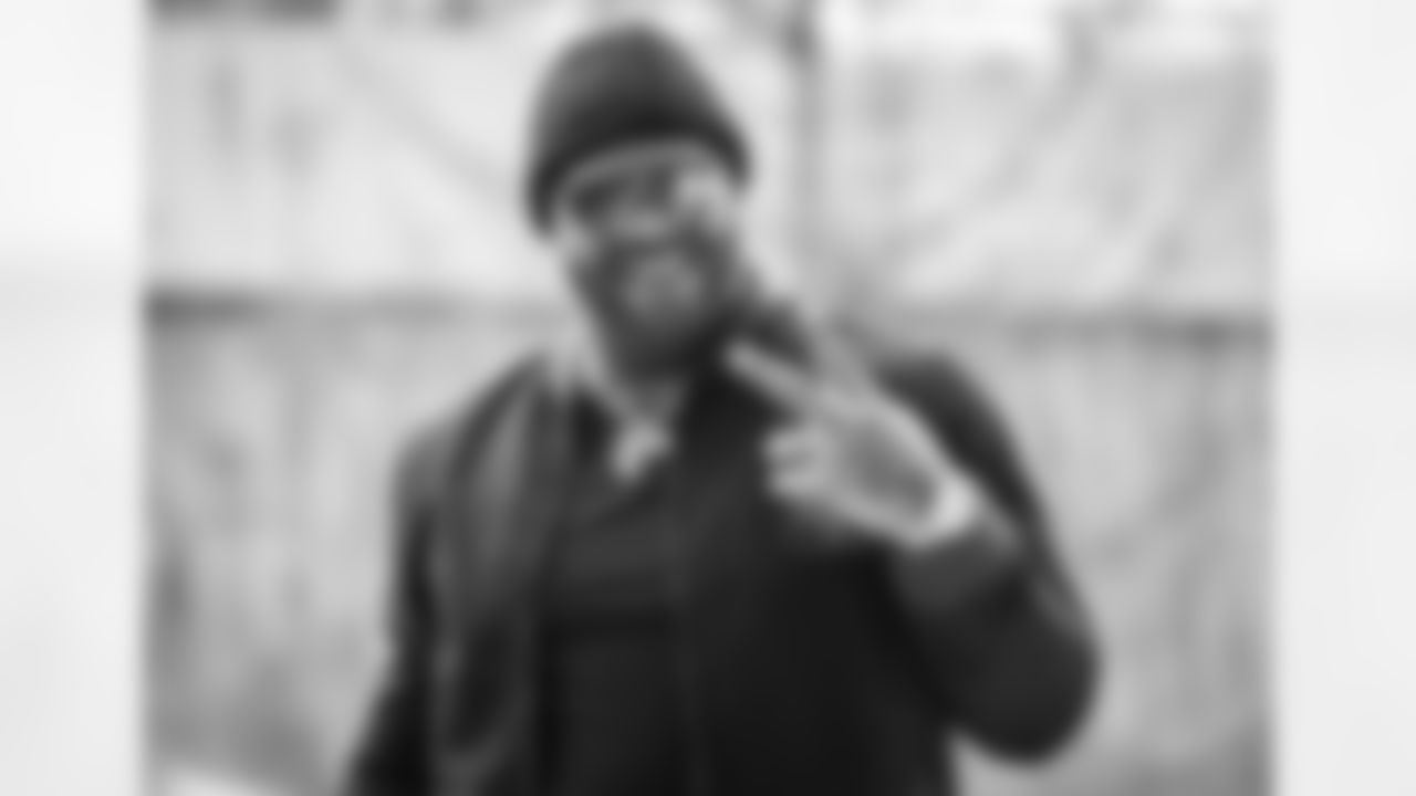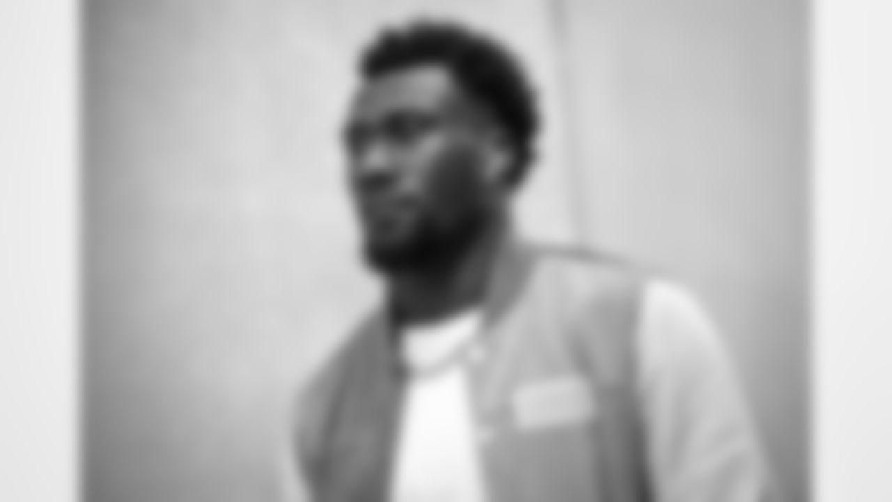 Atlanta Falcons Adetokunbo Ogundeji #92 arrives prior to a game against the New Orleans Saints at Mercedes-Benz Stadium in Atlanta, Georgia on Sunday, January 9, 2022. (Photo by Dakota Williams/Atlanta Falcons)