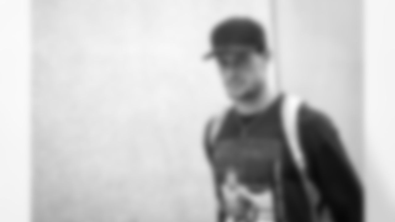 Atlanta Falcons quarterback Josh Rosen #16 arrives prior to a game against the New Orleans Saints at Mercedes-Benz Stadium in Atlanta, Georgia on Sunday, January 9, 2022. (Photo by Dakota Williams/Atlanta Falcons)