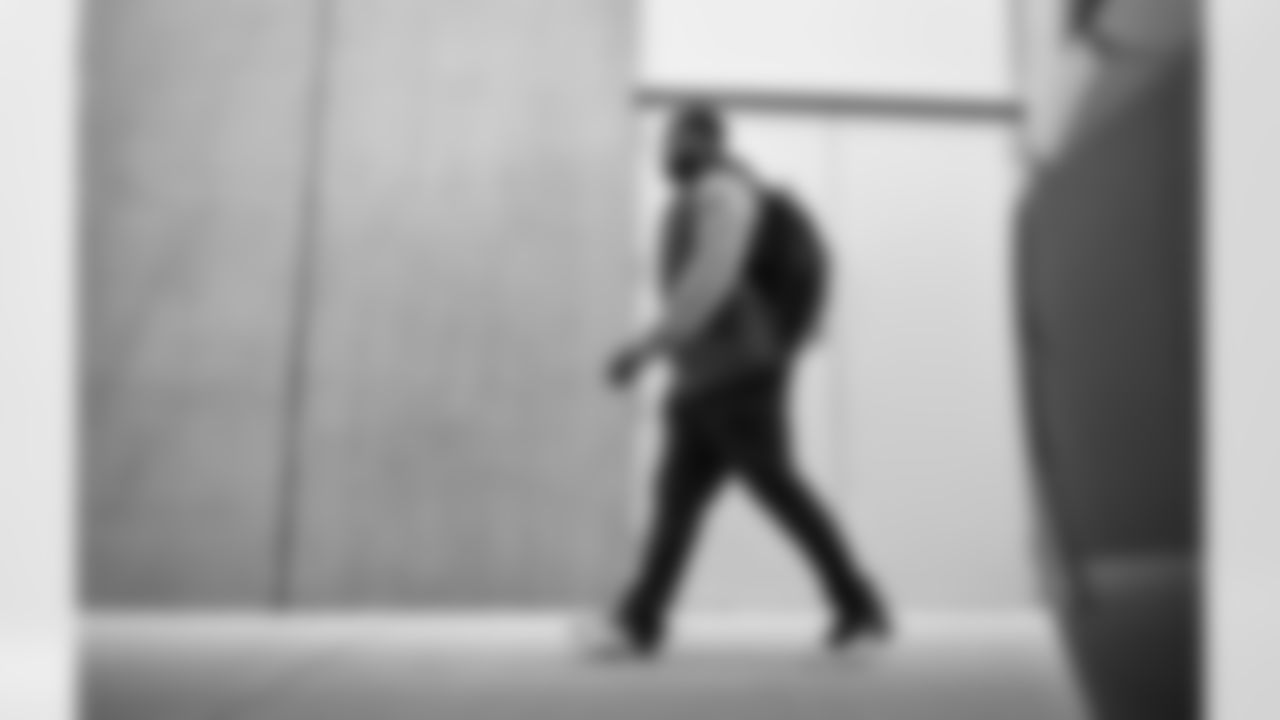 Atlanta Falcons center Josh Andrews #68 arrives prior to a game against the New Orleans Saints at Mercedes-Benz Stadium in Atlanta, Georgia on Sunday, January 9, 2022. (Photo by Dakota Williams/Atlanta Falcons)