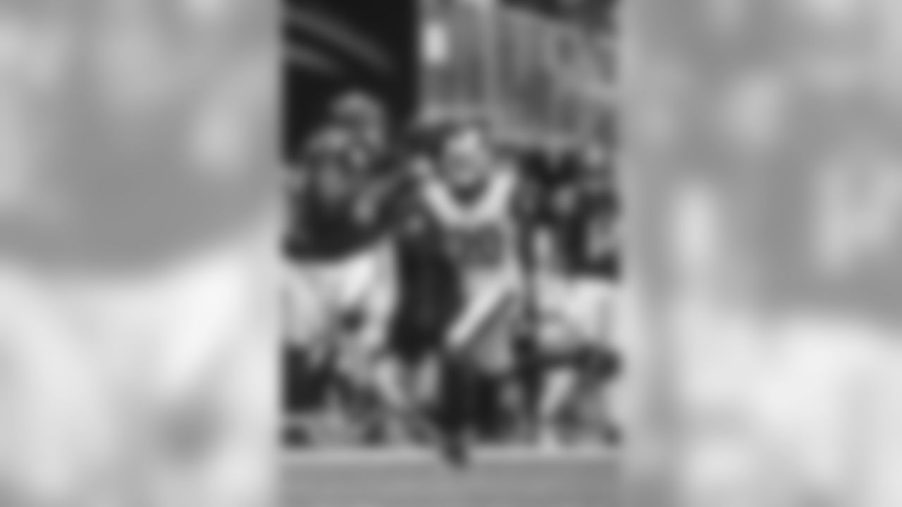 Atlanta Falcons running back Ito Smith #25 in action against Houston Texans free safety Tashaun Gipson #39 during the first half of the game at NRG Stadium in Houston, Texas, on Sunday October 6, 2019. (Photo by Rob Foldy/Atlanta Falcons)