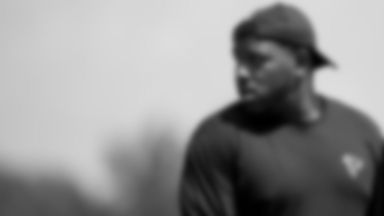 Atlanta Falcons defensive tackle Marlon Davidson #90 at AT&T Atlanta Falcons Training camp on August 9, 2020 in Flowery Branch, Ga. (Photo by Kara Durrette/Atlanta Falcons)