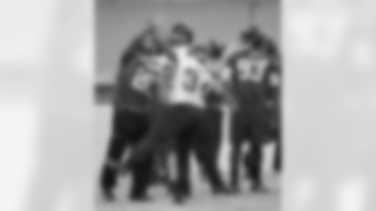 Matt Bryant, the NFC Special Teams Player of the Month, leads the team off the field