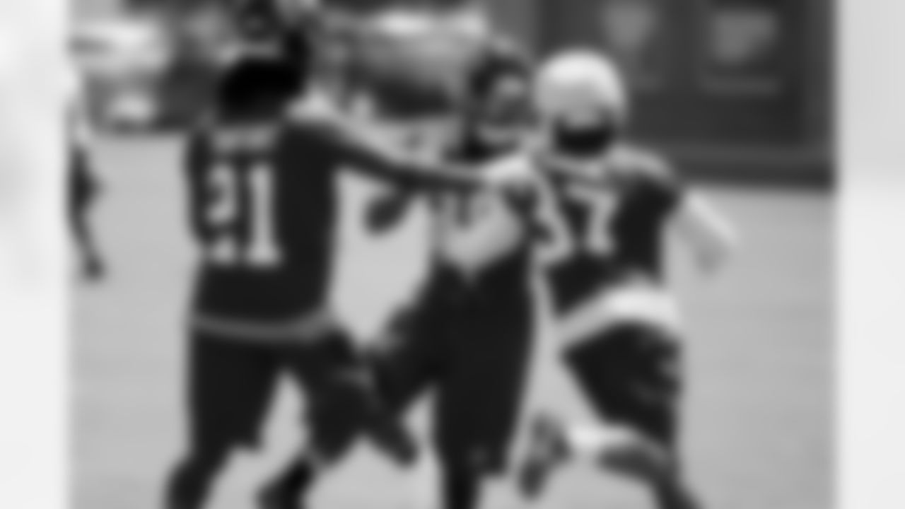 CB Desmond Trufant and CB Ricardo Allen work with CB Javier Arenas