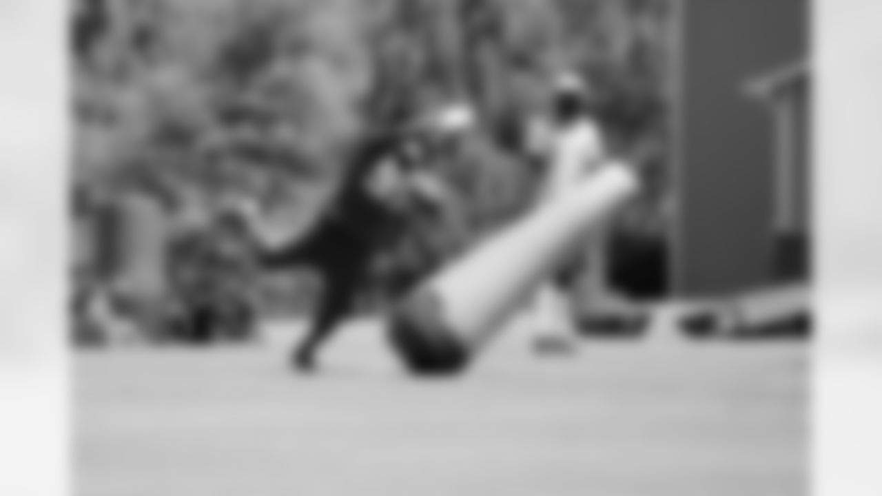 DE Cliff Matthews is tagged up in a drill