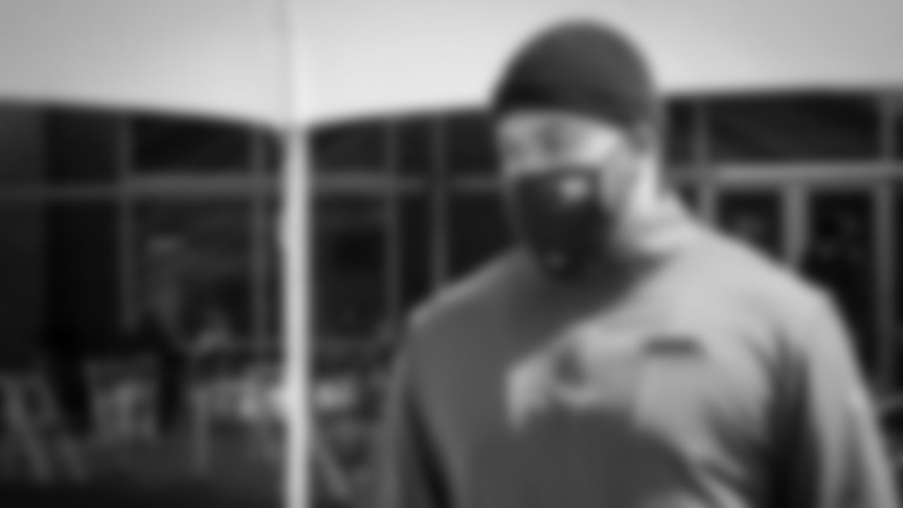 Atlanta Falcons defensive end Austin Edwards #95 travels to Green Bay to face the Packers on October 4, 2020. (Photo by Matt Haley/Atlanta Falcons)