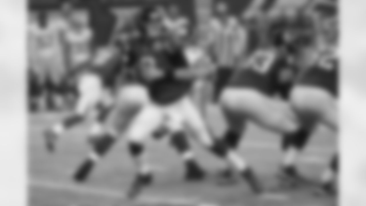 QB Matt Ryan drops back in the pocket looking to pass downfield