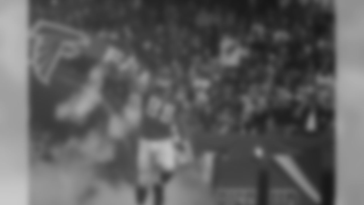 TE Tony Gonzalez points to the crowd as he makes his way out of the tunnel