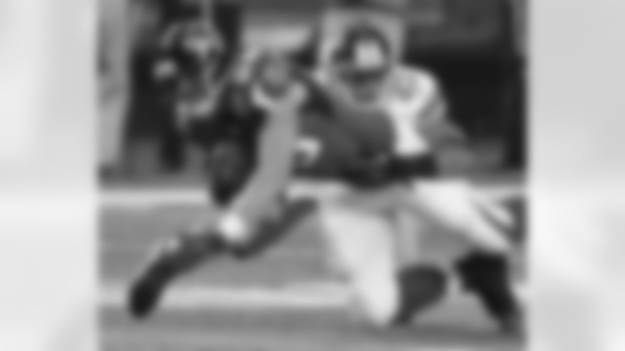 LB Akeem Dent and CB Asante Samuel combine to make the tackle