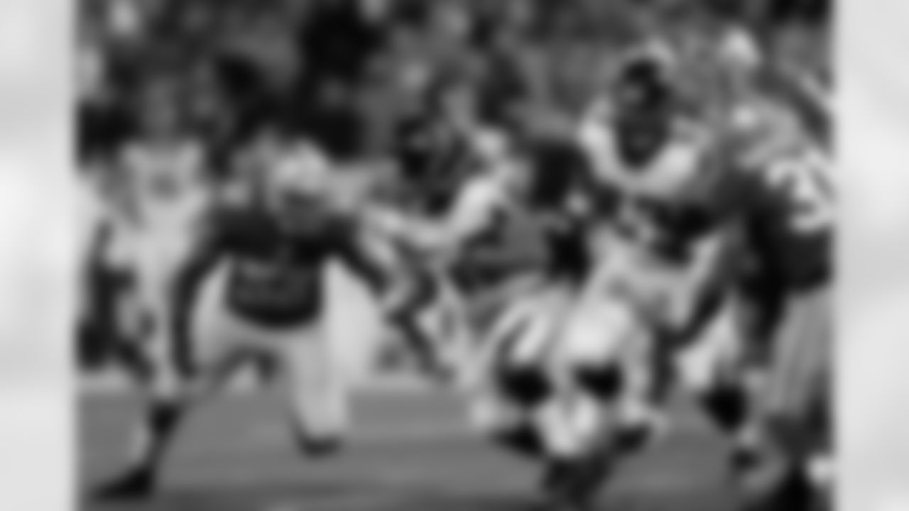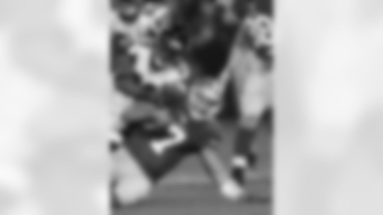 S William Moore and LB Stephen Nicholas take down 49ers RB Frank Gore