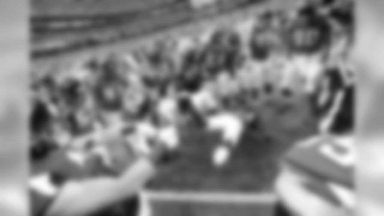 RB Jacquizz Rodgers protects the ball as he is surrounded by Seahawks in the second half