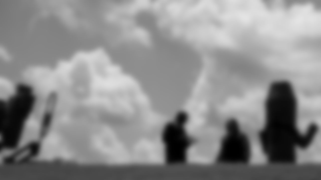 The receivers walk off of the field at AT&T Atlanta Falcons Training Camp on August 4, 2020 in Flowery Branch, Ga. (Photo by Rob Foldy/Atlanta Falcons)