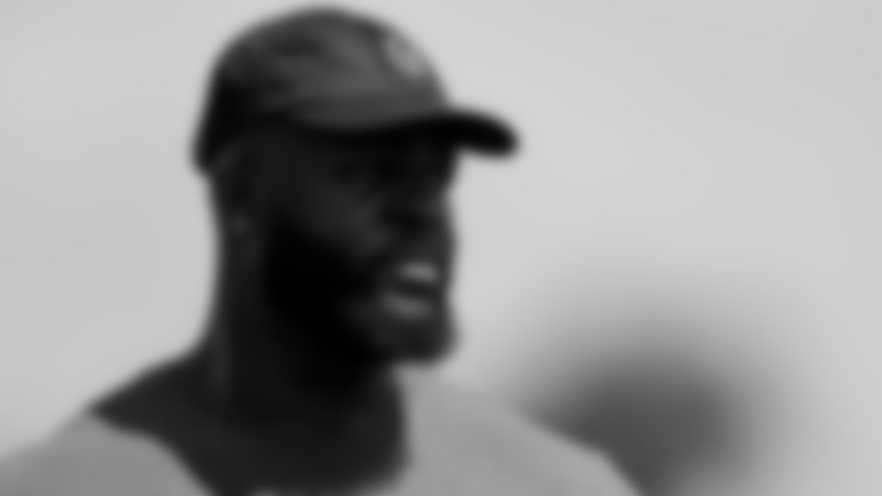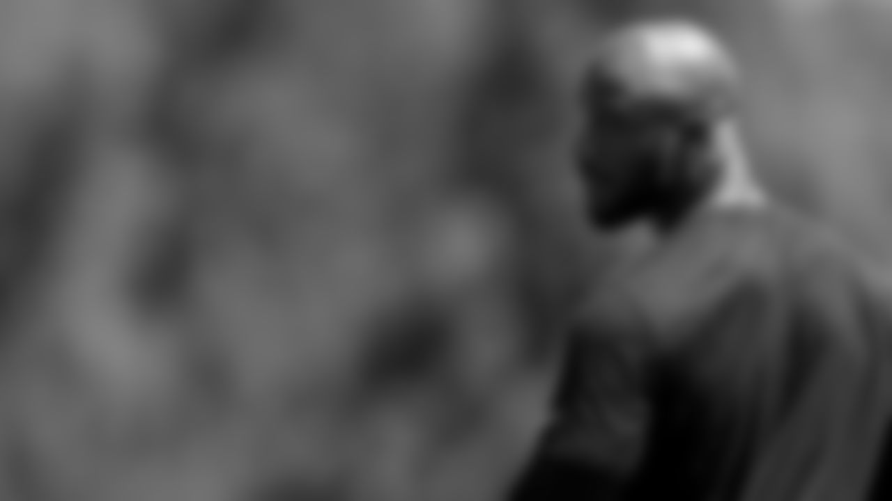 Atlanta Falcons defensive end Allen Bailey #93 stays focused at AT&T Atlanta Falcons Training Camp on August 4, 2020 in Flowery Branch, Ga. (Photo by Rob Foldy/Atlanta Falcons)