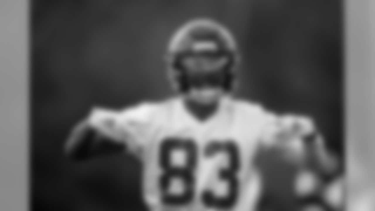 Atlanta Falcons wide receiver Russell Gage #83 looks on during practice. (Photo by Kara Durrette/Atlanta Falcons).