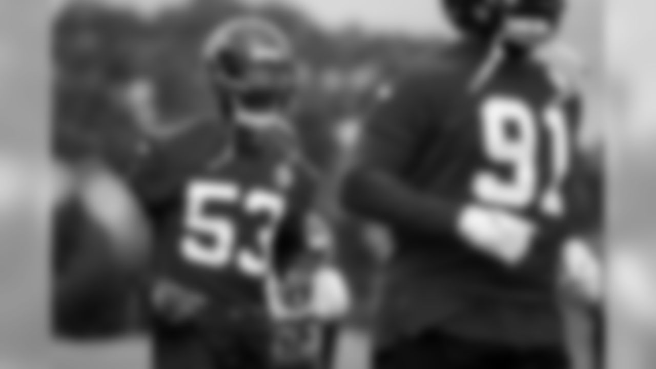Atlanta Falcons linebacker Jermaine Grace #53 warms up during practice. (Photo by Kara Durrette/Atlanta Falcons).