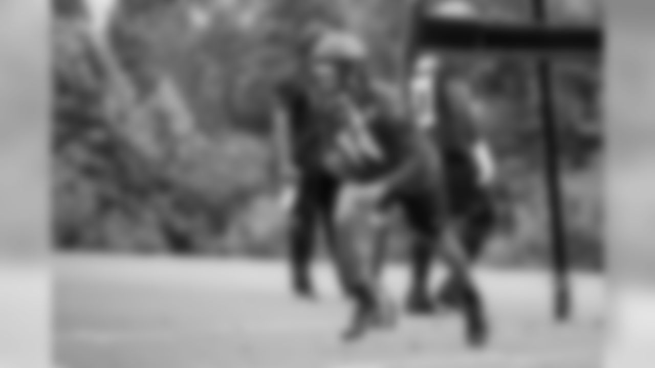 Offensive assistant Ben Steele runs during practice. (Photo by Kara Durrette/Atlanta Falcons).