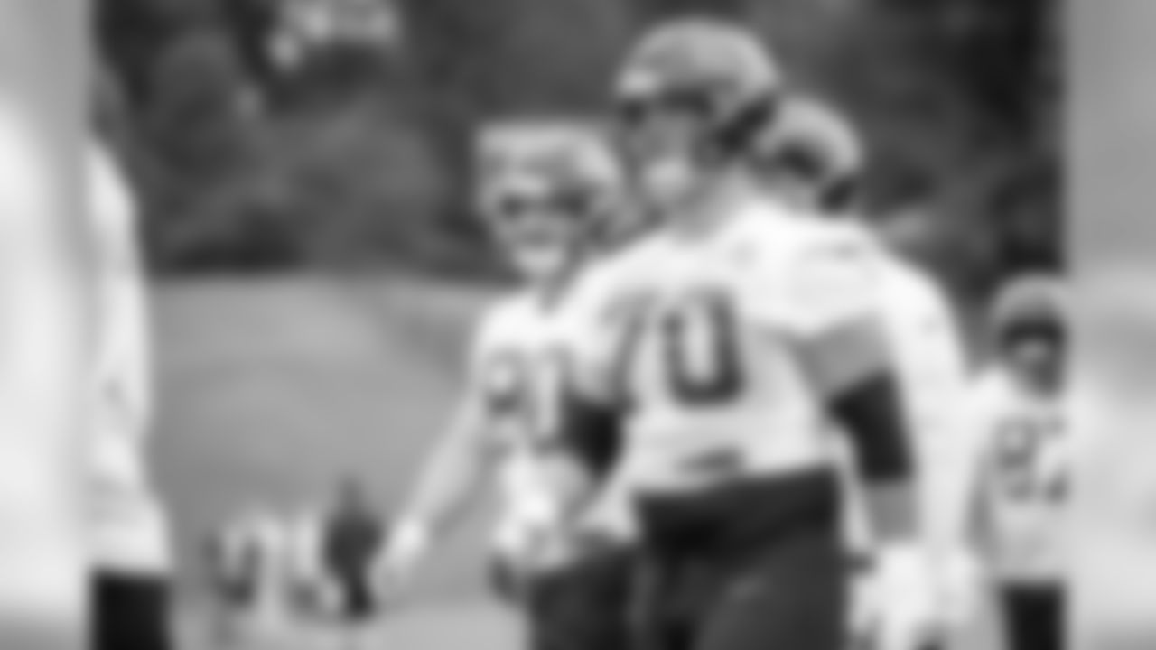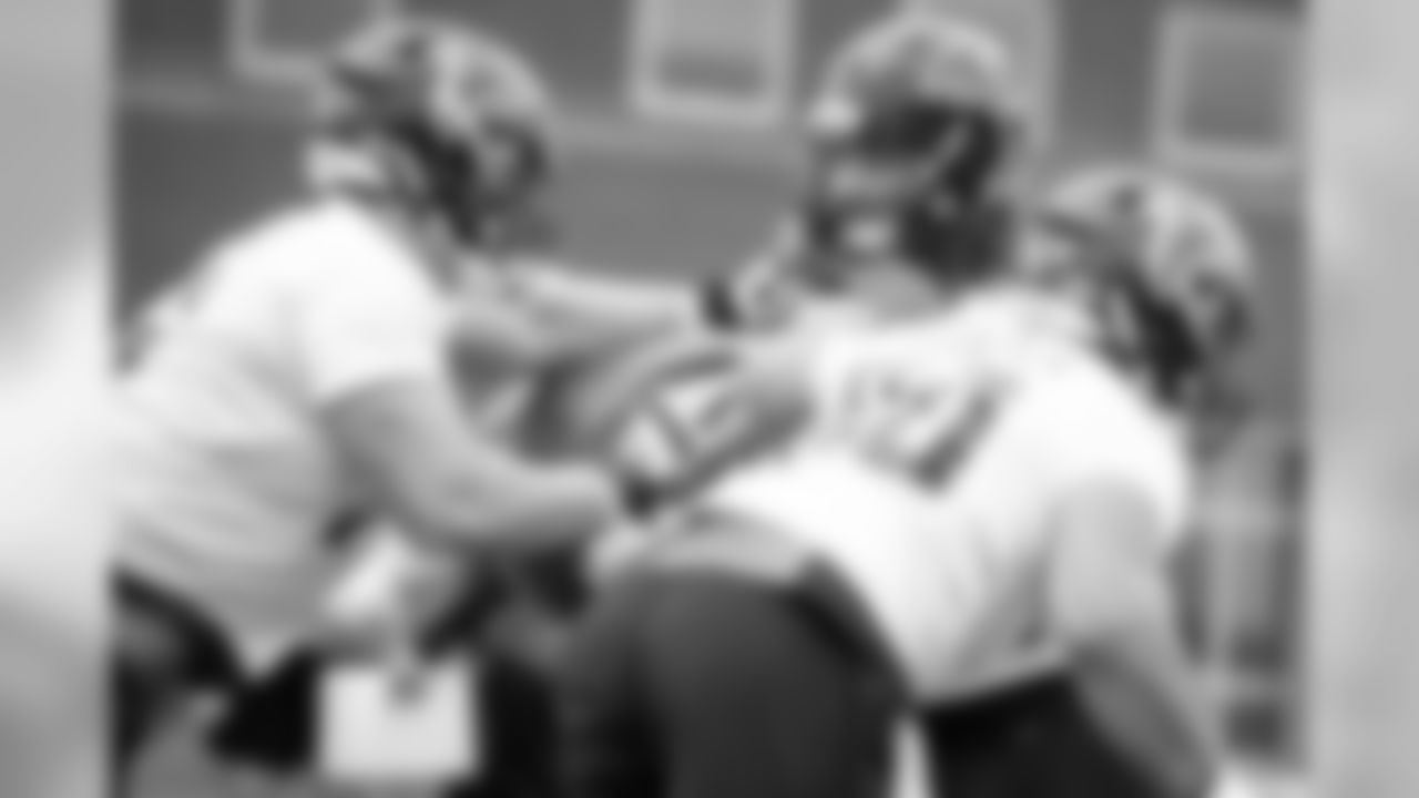 The offensive line, now with OT Kaleb McGary back in the mix, was hard at work in the second practice ahead of the fourth preseason game against the Jacksonville Jaguars. Here are our favorite images from practice.