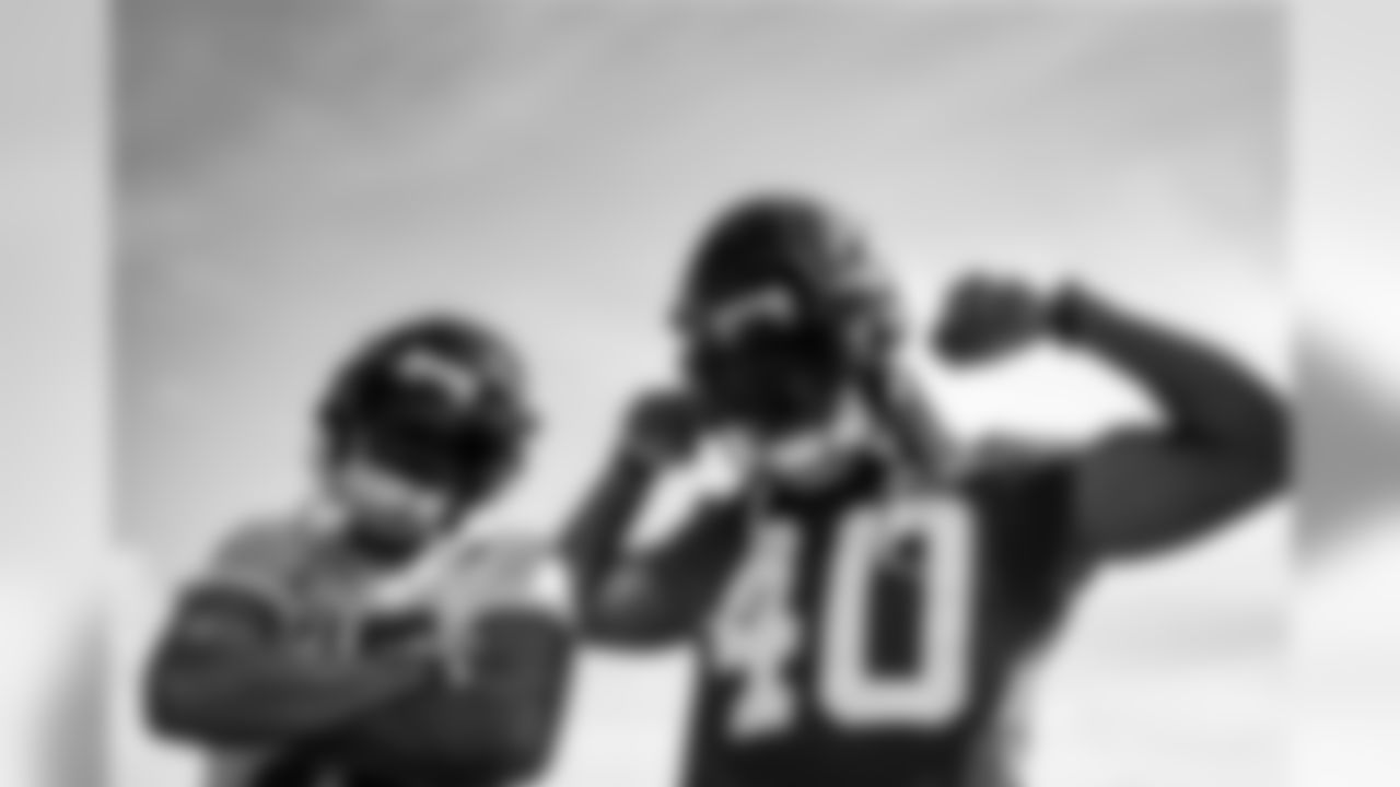 Atlanta Falcons wide receiver Devin Gray #15 and defensive back Ryan Neal #40 on the last day of 2019 AT&T Atlanta Falcons Training Camp. (Photo by Kara Durrette/Atlanta Falcons)
