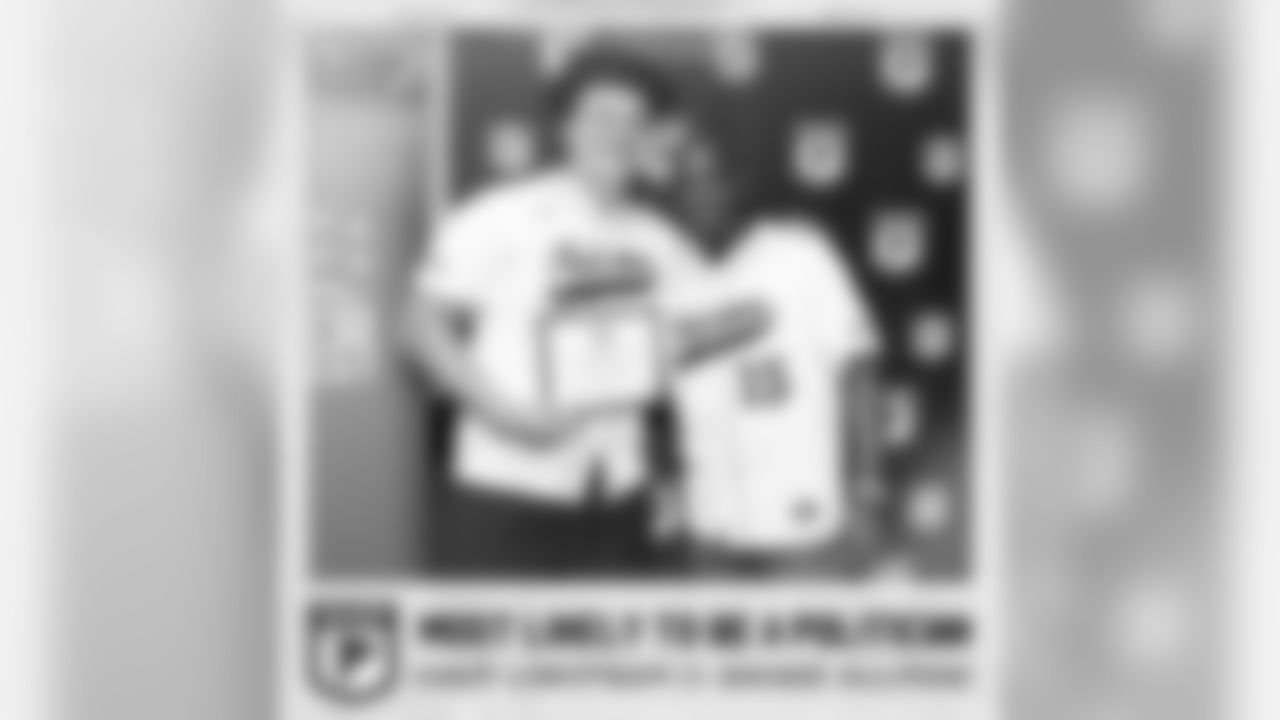 It's a tie! OG Chris Lindstrom and RB Qadree Ollison tied in voting by the 2019 Rookie Class for "Most Likely to Be a Politician." Take a look at these images of Lindstrom and Ollison during Minicamp and in the Falcons University program.