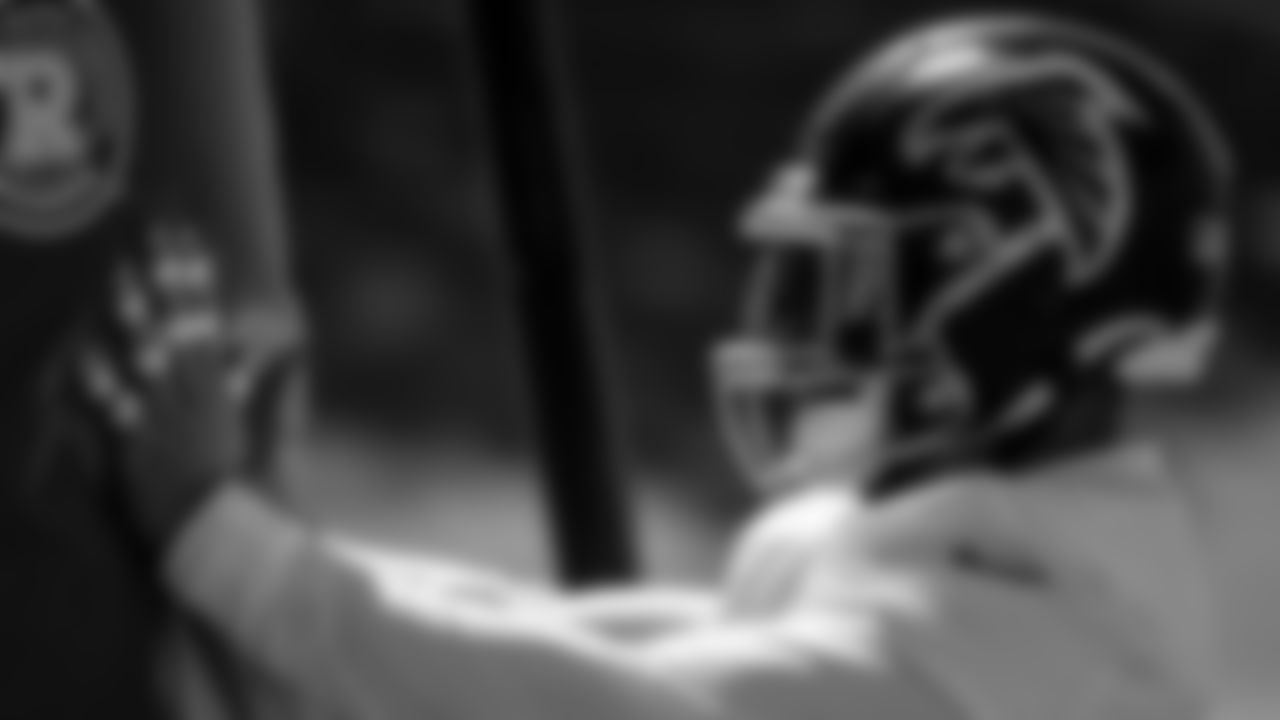 Atlanta Falcons running back Todd Gurley II #21 rests his hand on his helmet during practice at IBM Performance Field. (Photo by Kara Durrette/Atlanta Falcons)