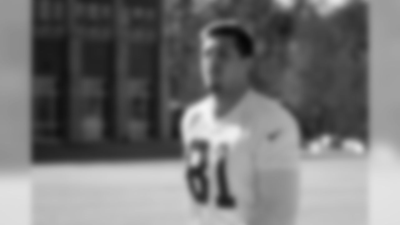 Atlanta Falcons defensive back Jordan Miller #28 laugh during practice. (Photo by Kara Durrette/Atlanta Falcons)