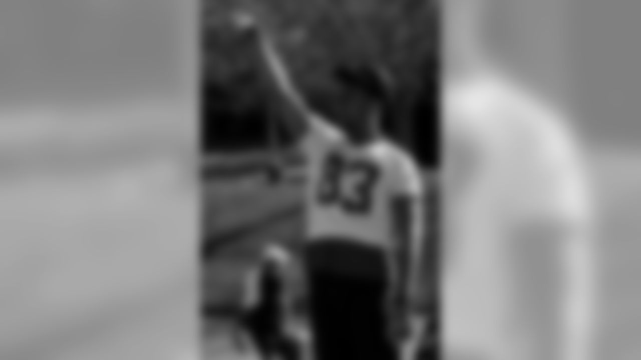 Atlanta Falcons coach Bernie Parmalee gestures during practice. (Photo by Kara Durrette/Atlanta Falcons)