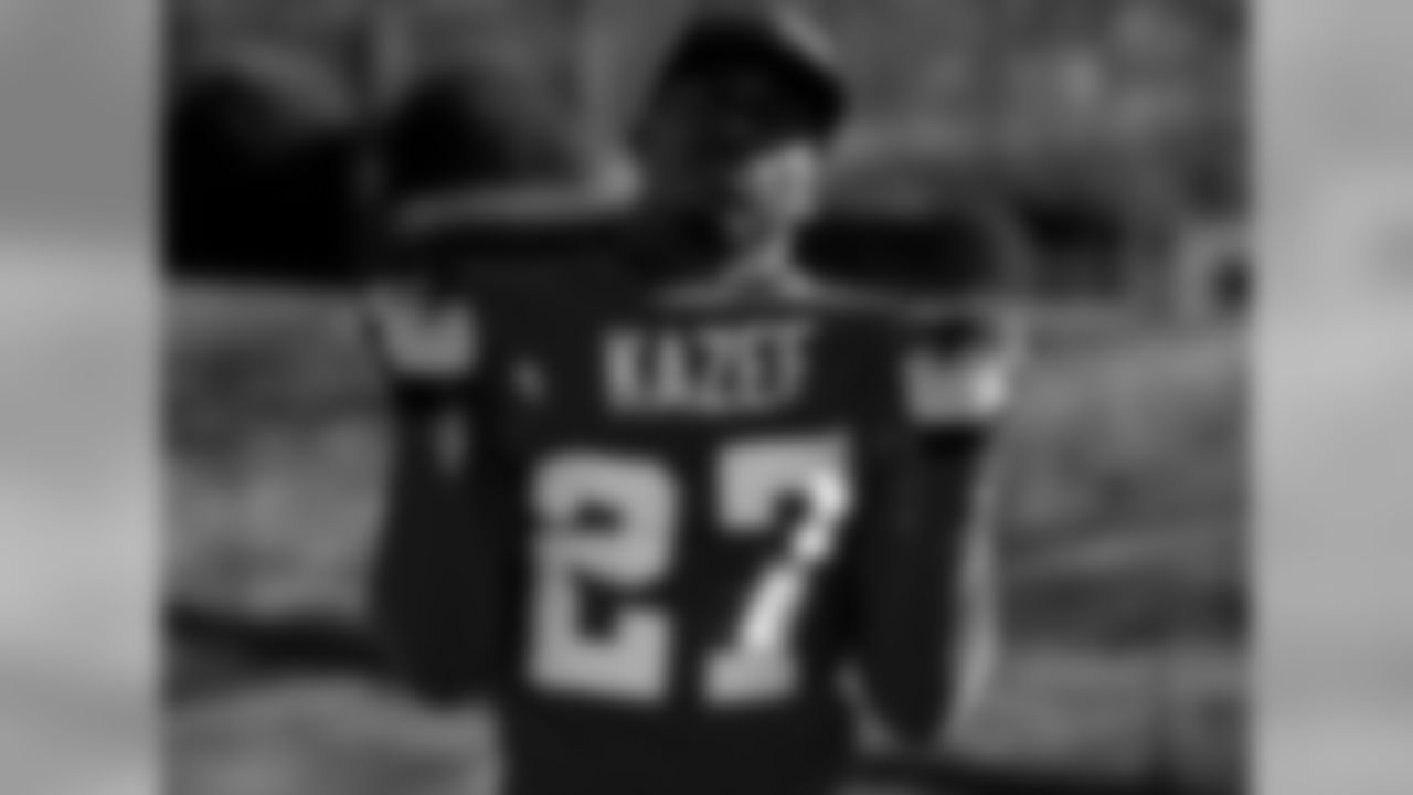 Atlanta Falcons strong safety Damontae Kazee #27 gestures during practice. (Photo by Kara Durrette/Atlanta Falcons)
