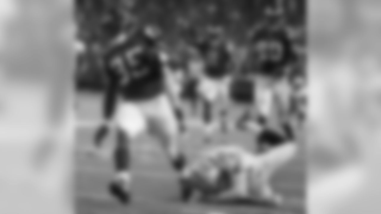 RB Antone Smith dodges New York Giants players for a touchdown.