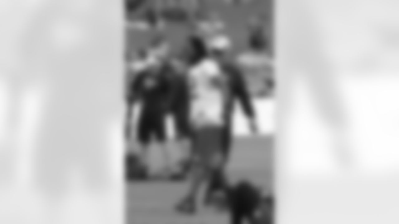 Assistant Head Coach Terry Robiskie and former Falcons player and Hall of Famer Deion Sanders