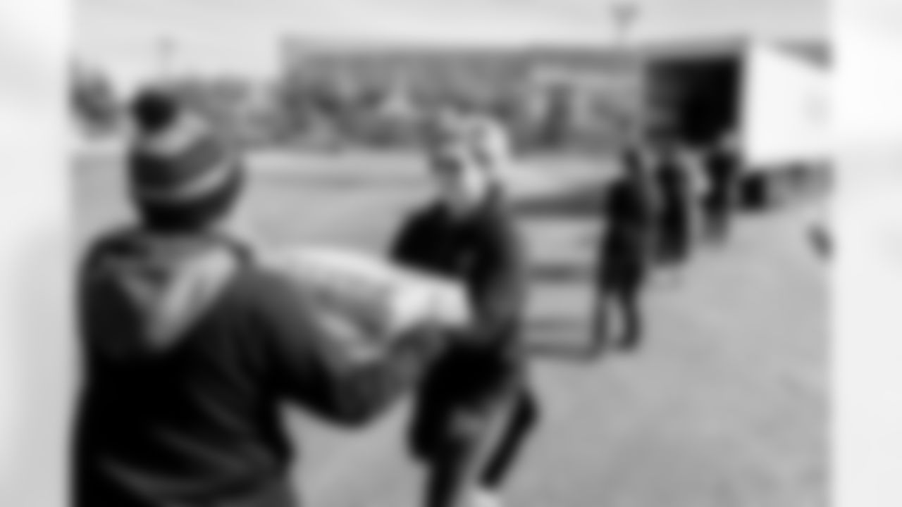 Atlanta Falcons players provided funding for 800 deserving families on the Westside to receive a turkey and other goods to cook on Thanksgiving.